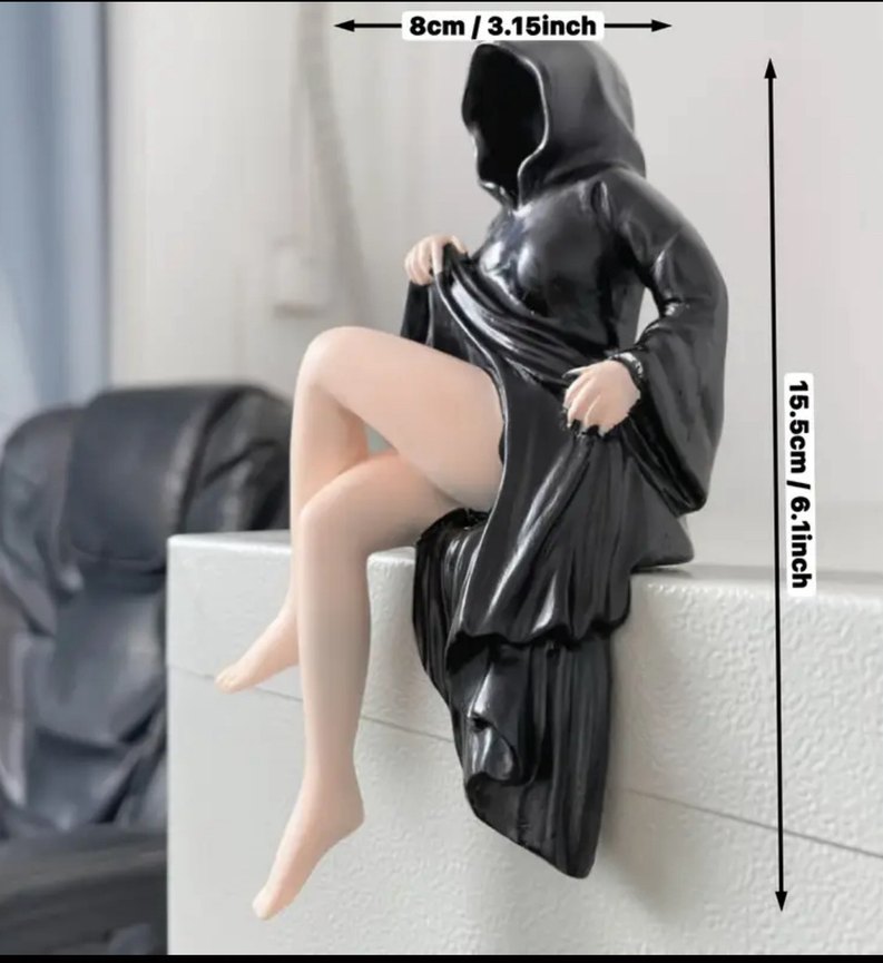 8cm boyunda, siyah renkte kapüşonlu ve açık bacaklı figürin. Parlak yüzeyiyle dikkat çekici bir tasarıma sahip.