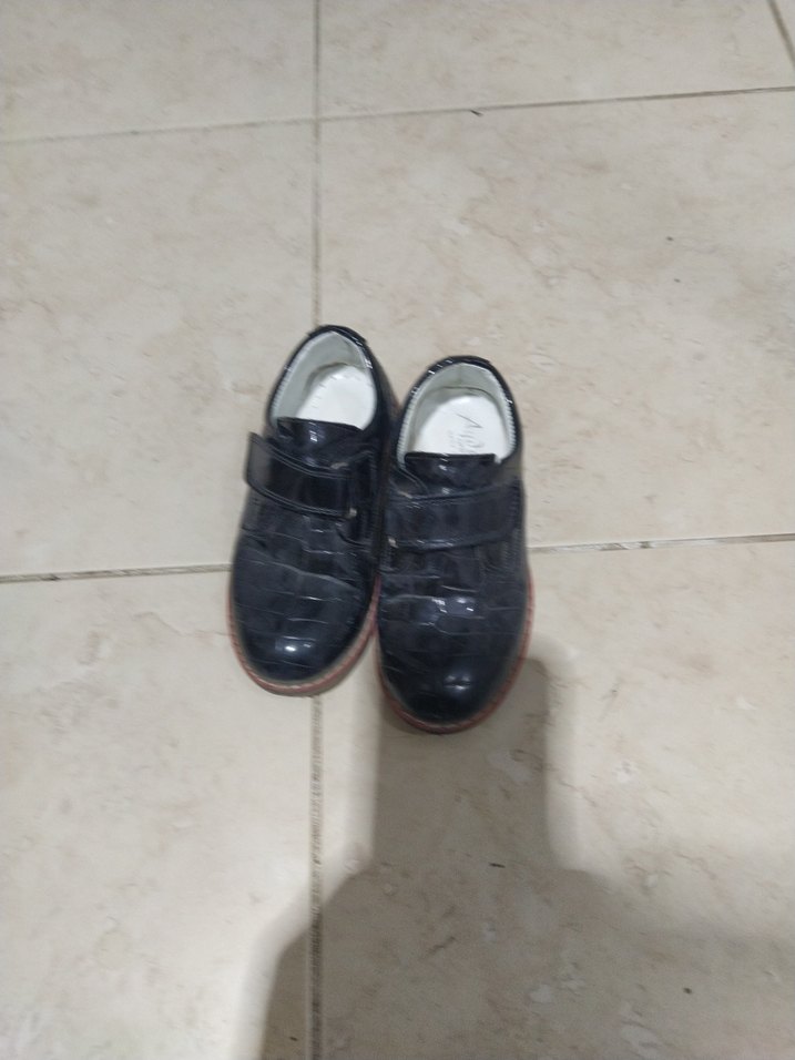 Koyu siyah renkli,tokalı erkek çocuk ayakkabısı.