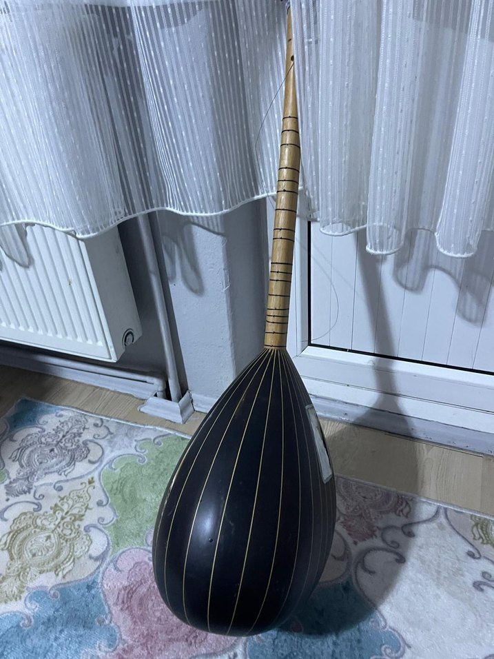 Koyu siyah renkte, uzun saplı bağlama, ince telleriyle geleneksel ses ve klasik tasarım sunar. telleri köpük ilgilenen varsa