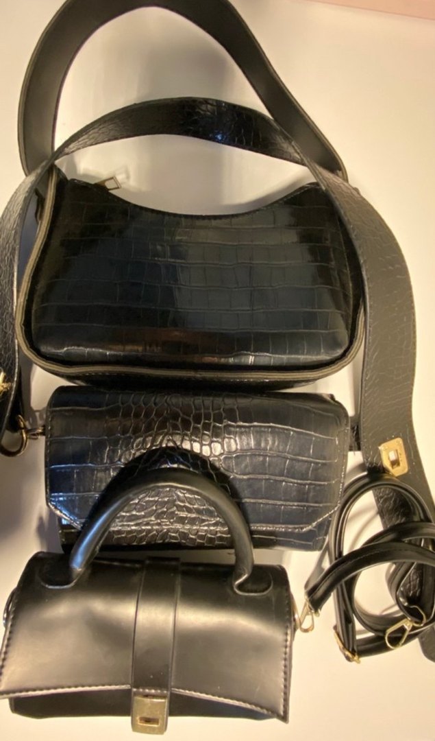 Koyu siyah yılan desenli deri kadın çantası, tokalı detaylarla Paris sokak modasını yansıtıyor.