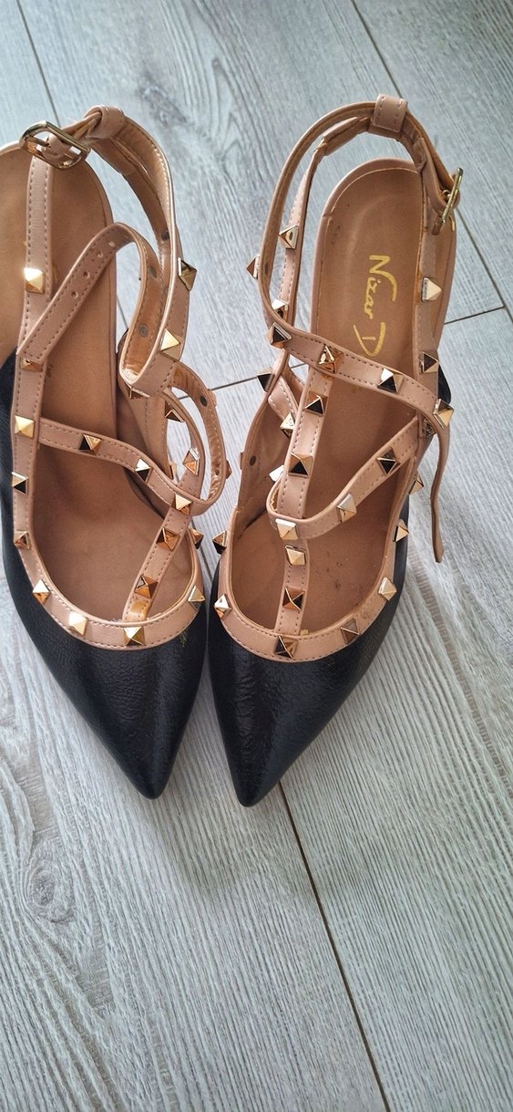 Koyu siyah yılan desenli, tokalı bantlı stiletto topuklu ayakkabı. Kauçuk malzemeden üretilmiştir, romantik akşamlar için uygundur.