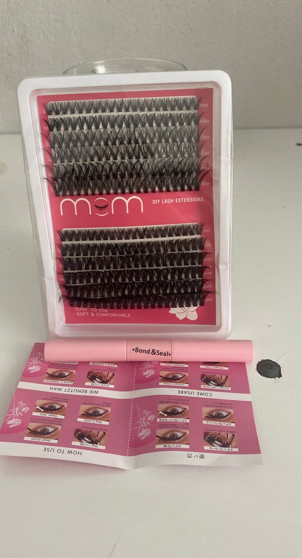 Koyu renkte takma kirpikler ve yapıştırıcı ile birlikte gelir. Uygulama için kullanımı kolay talimatlar içerir.
