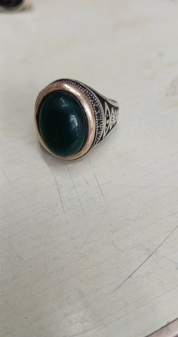 Koyu Turkuaz Taşlı Vintage Erkek Yüzük gümüş