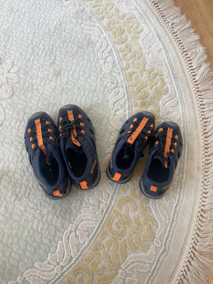 Koyu turuncu renkli, lastik malzemeden yapılmış, Velcro bantlı erkek çocuk sandaletleri. Sade ve rahat bir tarza sahip. 33 ve 29 numarası mevcut 2 defa giyinildi sadece sıfırdan farksızdır