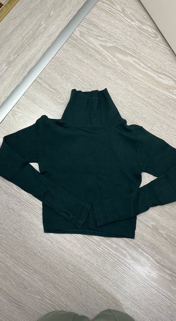 Koyu yeşil , boğazlı ve örgü dokulu, uzun kollu, fitted kesim kadın kazak. Yumuşak ve sıcak hissi veren fleece kumaştan üretilmiştir. Günlük kullanım ve sokak stili için uygundur.