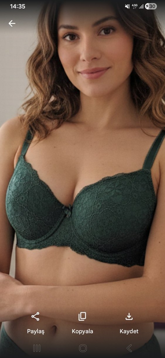 Koyu yeşil renkte, dantel detaylı sütyen. Ayarlanabilir askıları ve rahat kesimiyle konforlu, bohem tarzda, desensiz tasarım sunar. sayesinde vücut hatlarınıza tam uyum sağlar. Hijyen kuralları gereği denenmemiştir" ve "Sadece fotoğraf çekimi için paketi açılmıştır"