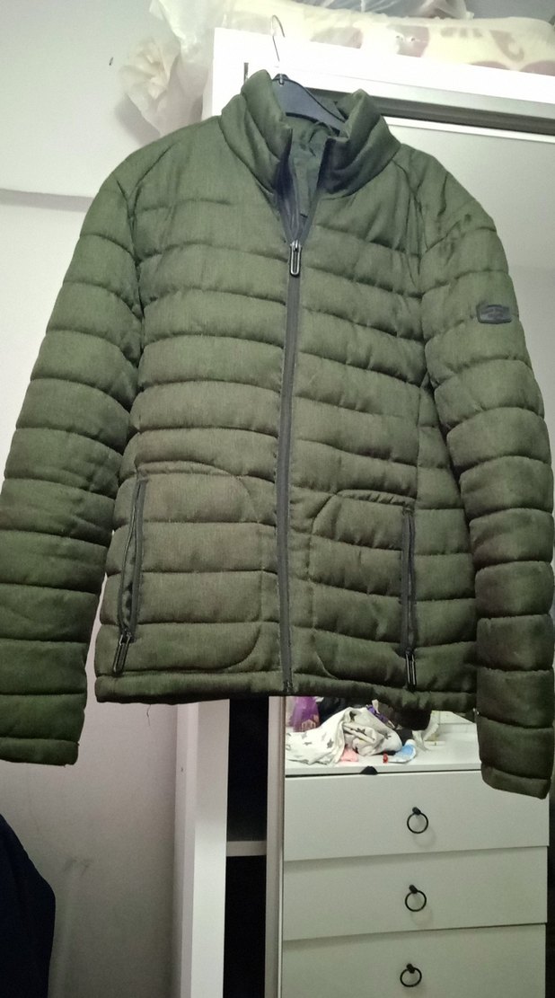 koyu yeşil renkte, fermuarlı ve uzun kollu erkek mont. Yumuşak ve rahat kumaştan, günlük ve sokak stili için uygun. Notch yaka detaylı, slim kesim.