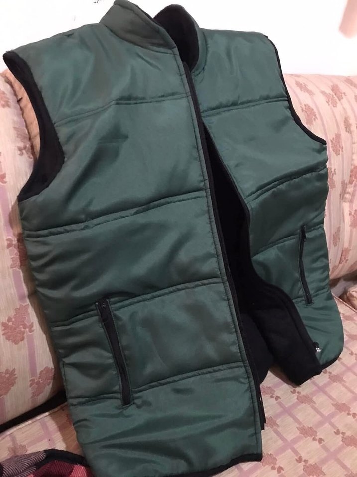 Koyu yeşil renkli, kolsuz erkek monttur. Boğazlı yakası ve fermuarlı cepleri vardır. Yumuşak, sıcak kumaştan yapılmış, günlük ve sokak stiline uygundur.