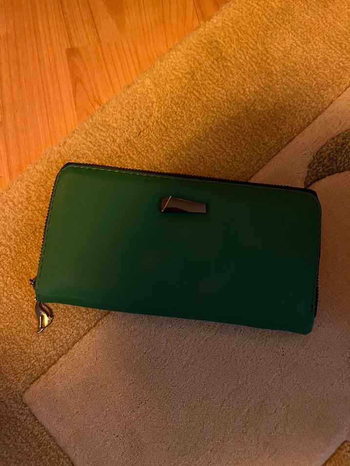 Koyu yeşil fermuarlı ve modern klasik tarzda, günlük kullanıma uygun kadın cüzdanı.