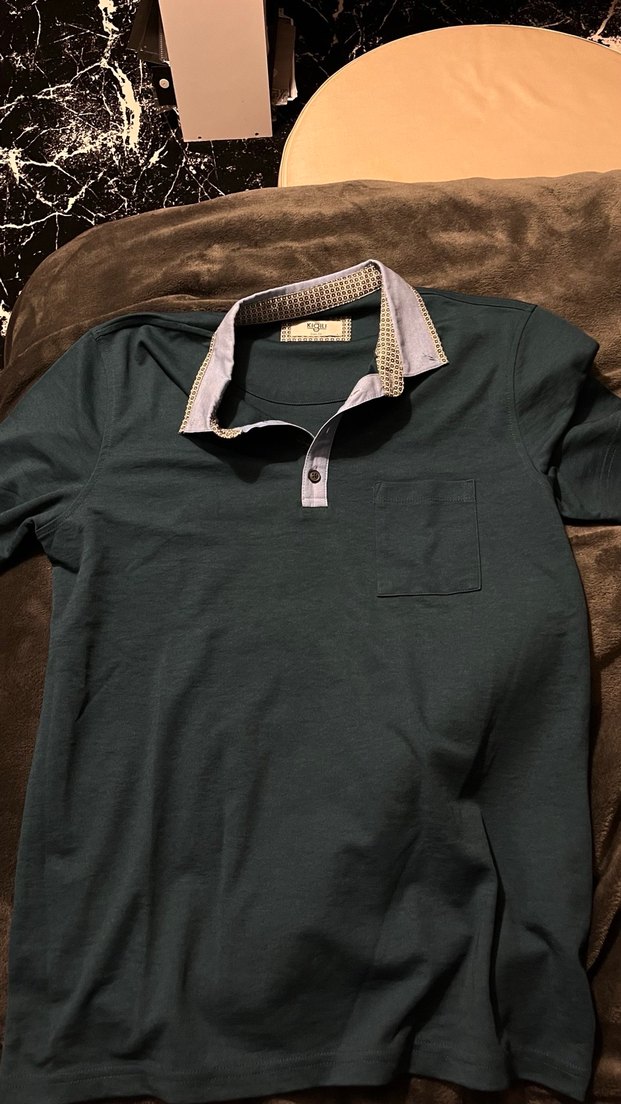 koyu yeşil Gri Düğmeli Polo Yaka Erkek Tişört