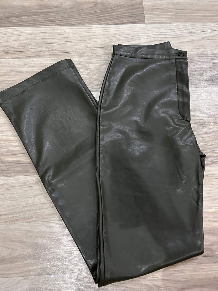Koyu Yeşil/Haki Deri Pantolon