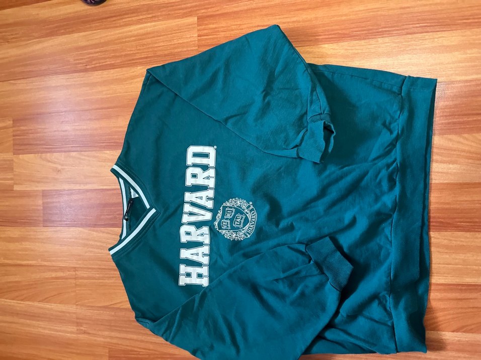 Koyu yeşil renk, uzun kollu ve yuvarlak yakalı erkek sweatshirt. Üzerinde Harvard baskısı bulunur, bol kesim ve rahat kumaştan üretilmiştir.
