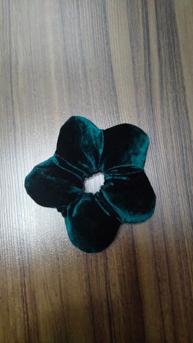 Koyu yeşil kadife çiçek şekilli toka, elastik bantlı ve vintage bohem tarzında.