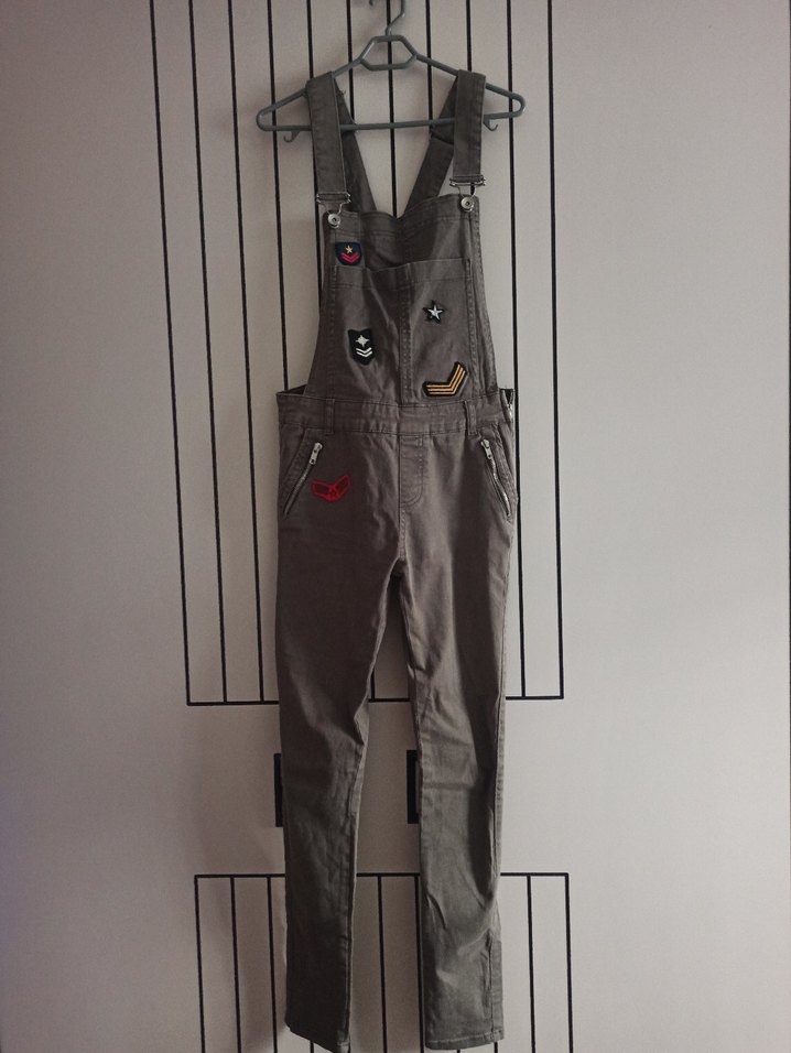 Nakış detaylı, tokalı askılı, dar kesim denim tulum.