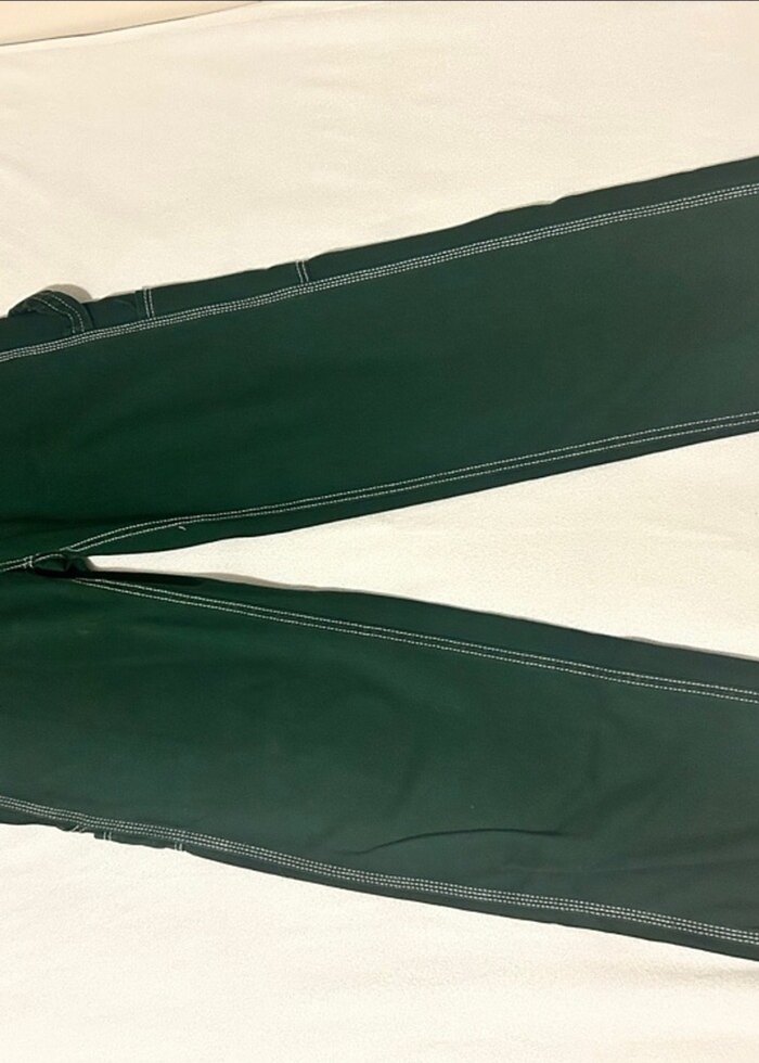 Kadınlara özel koyu yeşil renkte, kemerli ve midi boyda regular fit jean. Yumuşak sentetik kumaştan üretilmiştir, sade ve desensiz tasarımıyla günlük kullanıma uygundur.