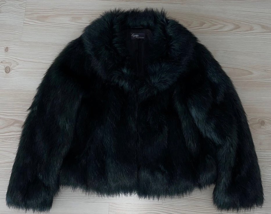 koyu yeşil peluş kürk mont