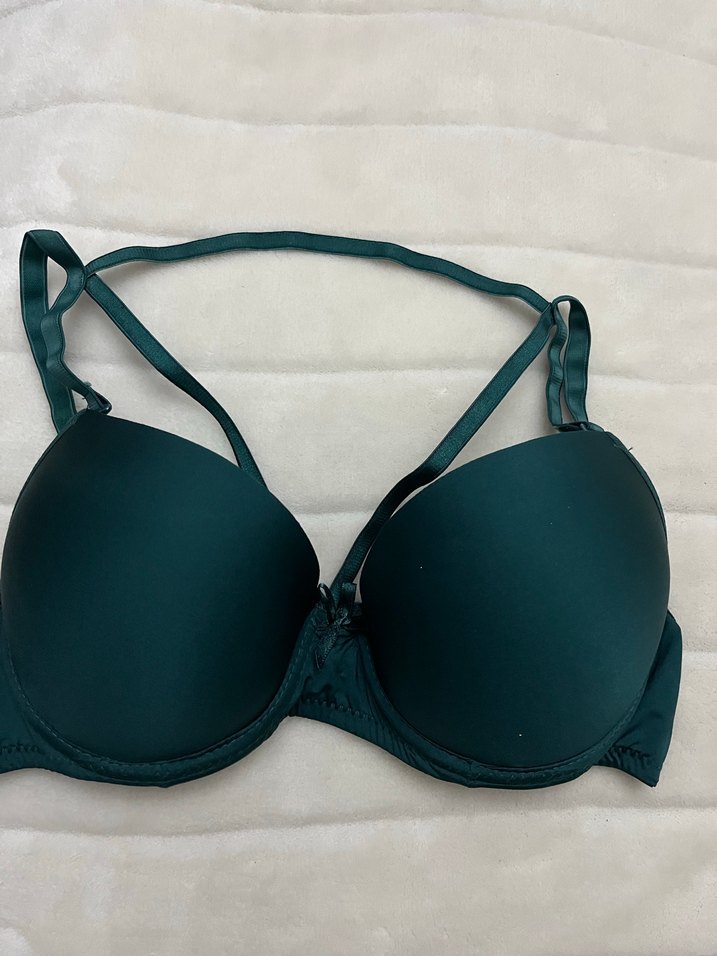 Koyu yeşil renkli, desensiz ve ayarlanabilir askılı ,önde çapraz askı detayı.85 B Venüs marka