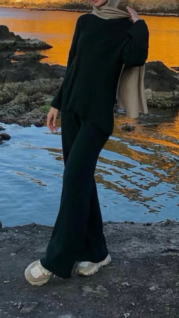 Koyu yeşil triko takım