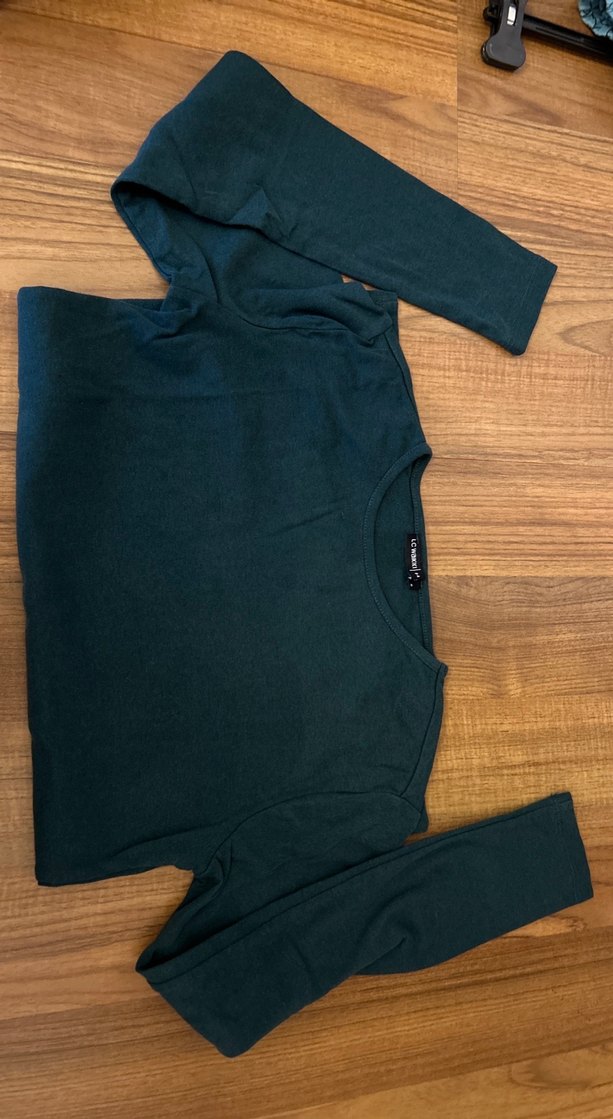 Koyu Yeşil Uzun Kollu Basic Tişört kusuru son foto da