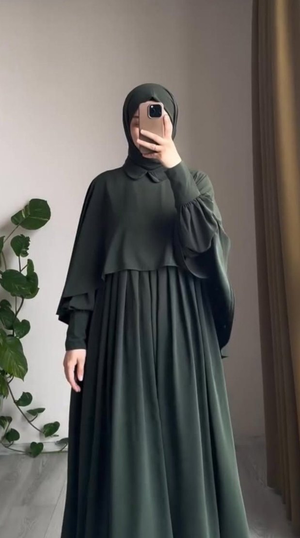 Koyu Yeşil Uzun Kollu Salaş Siyah Elbise