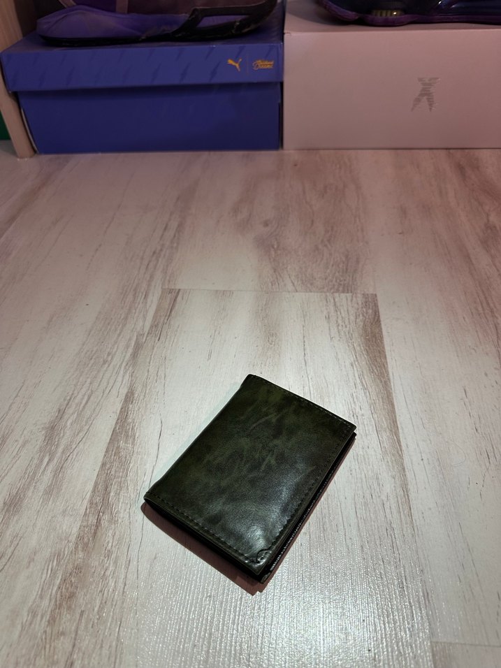 Koyu yeşil renkte, vintage tarzda erkek cüzdanı. Düz ve desensiz yüzeyiyle minimalist tarzı sevenlere uygun.