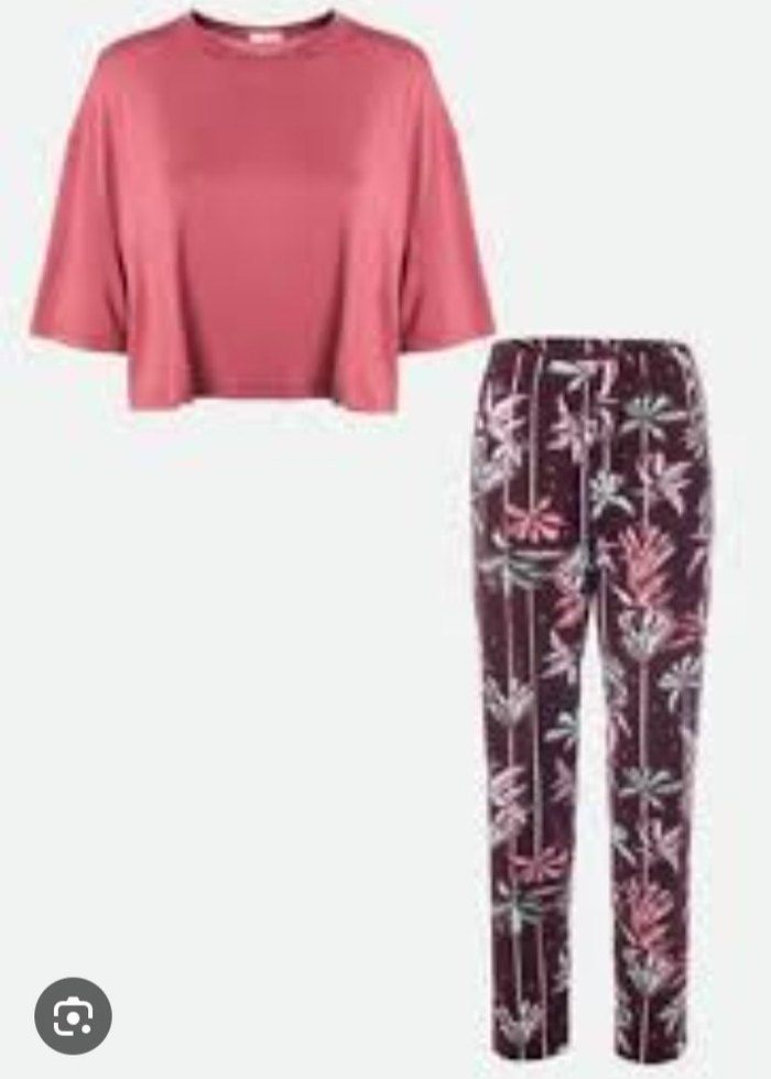 Koza Kadın Kısa Kollu Pembe Tişört ve Desenli Pantolon Takımı