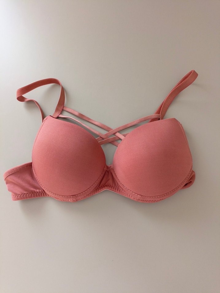 Sıfır. 1 kez yıkandı. Giyilmedi. Küçük geldi. Pembe renkli, desen içermeyen sütyen, ince çapraz askıları ile minimalist ve renkli bir tarz sunar. Balenli, . 75 BEDEN