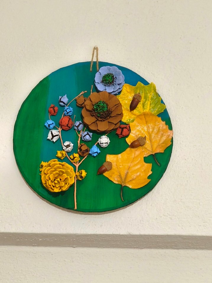 Kozalaktan el yapımı Çiçekli ve Yapraklı Duvar Dekoru