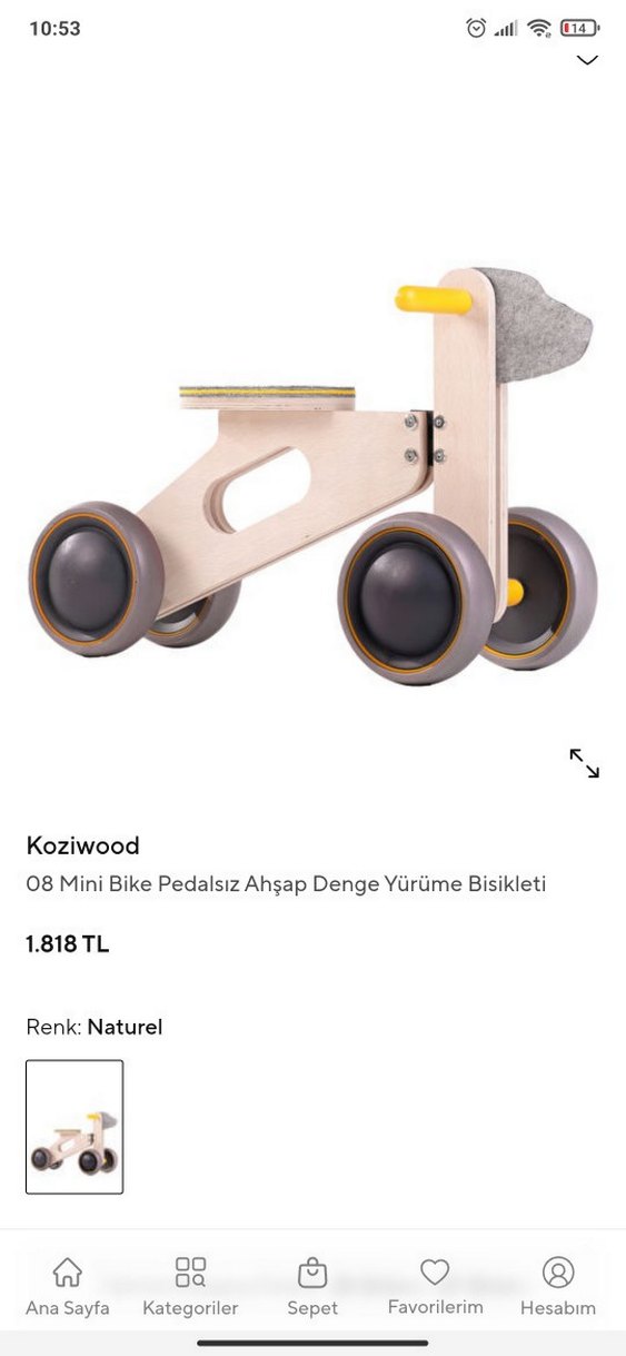 Koziwood Ahşap Pedalsız Denge Bisikleti