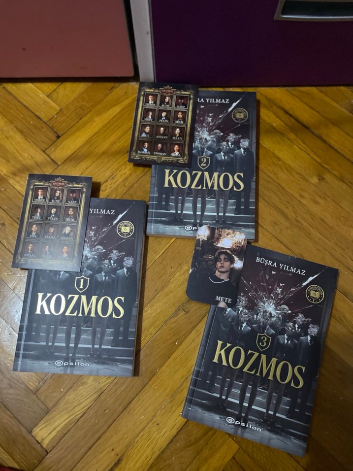 Bosra Yılmaz'ın Kozmos serisi, üç roman içerir. Karanlık, gizemli kapaklara sahip set, koleksiyon kartları ve ayraç ile birlikte gelir.