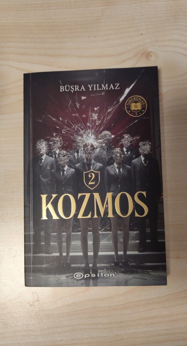 Büşra Yılmaz'ın yazdığı Kozmos 2 adlı roman, kırık cam ve yüzü olmayan figürler içeren gizemli kapak tasarımıyla dikkat çekiyor.