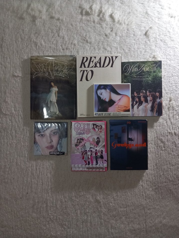 twice ready to be/dahyun digipack/with youth album, aespa my world giselle vers/drama karina vers, purple kiss geekyland, unis swicy albüm -icerik hasar durumu ve fiyat bilgisi sorabilirsiniz, cclemedigim icin satıyorum with youth ve drama gitti