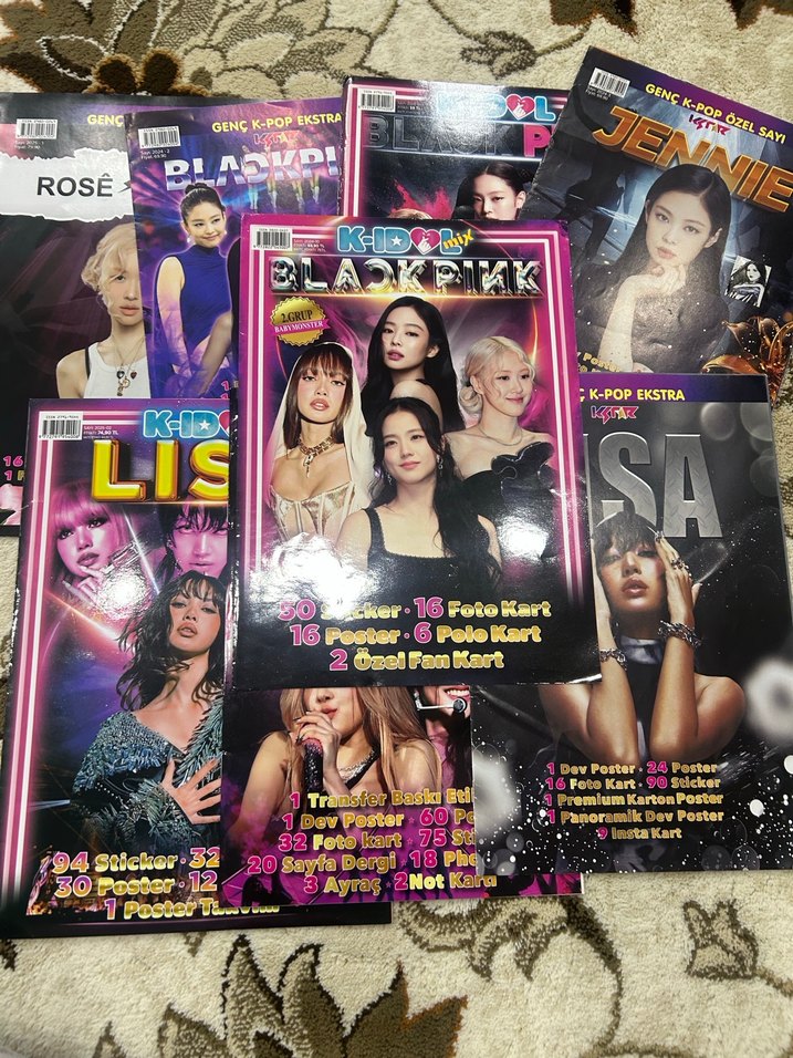 Blackpink, Rosé, Jennie ve Lisa'nın posterleri ve foto kartlarıyla K-Pop seti