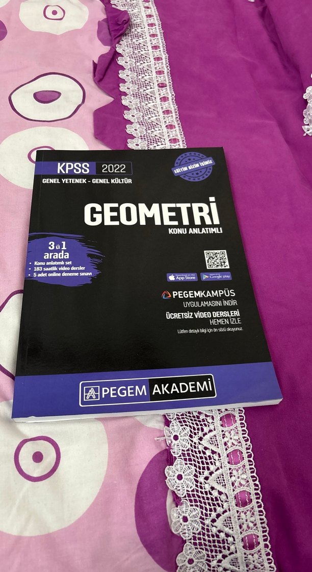 KPSS 2022 Geometri kitabı, konu anlatımı, 183 dakikalık video dersler ve 5 deneme sınavı içerir. Pegem Kampüs uygulamasıyla ücretsiz video dersler sunar.