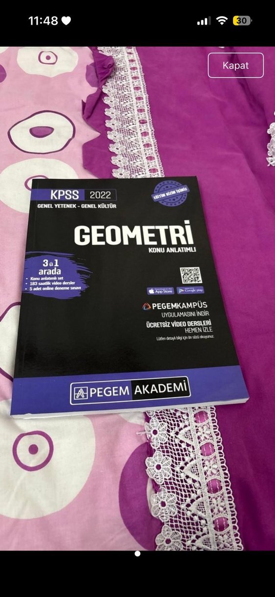 KPSS 2022 Geometri kitabı, konu anlatımı, 183 dakikalık video dersler ve 5 tam deneme sınavı içerir. Genel yetenek ve kültür hazırlığı için uygundur.