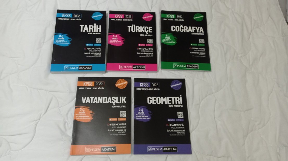KPSS 2022 için Tarih, Türkçe, Coğrafya, Vatandaşlık ve Geometri konularını içeren Pegem Akademi konu anlatımlı kitap seti.