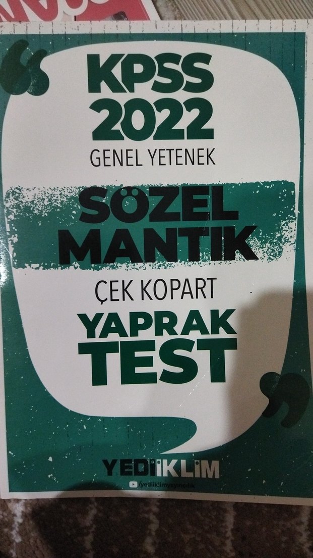 KPSS 2022 Genel Yetenek sözel mantık konularını içeren, çek kopart yaprak test kitabı. Yediklim yayınevi.