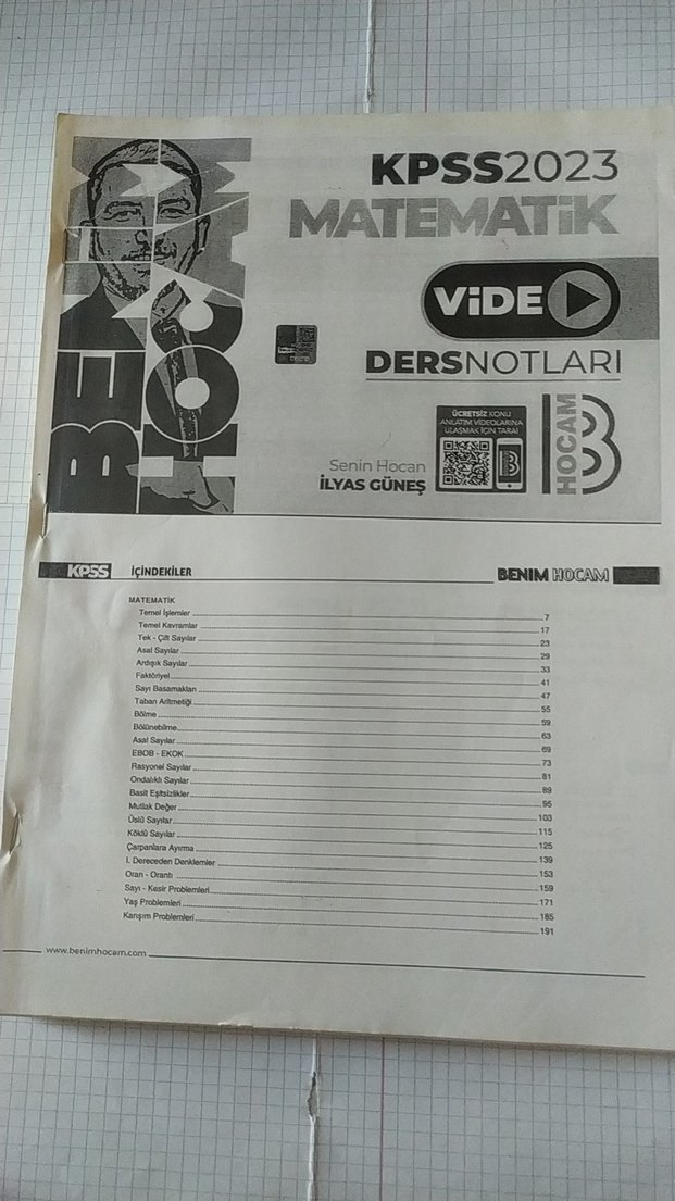 KPSS 2023 Matematik konularını içeren İlyas Güneş'in video ders notları. Sınav hazırlığı için kapsamlı içerik sunar. fotokopi