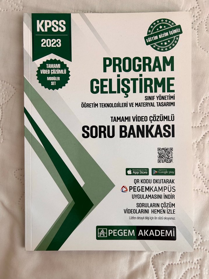 KPSS 2023 Program Geliştirme soru bankası sınıf yönetimi, öğretim teknolojileri ve materyal tasarımı konularını tam video çözümleriyle sunar. QR kodu okutarak Pegemkampüs uygulamasını indirip videoları izleyebilirsiniz. Kitap tertemizdir. Hiç kullanılmadı.