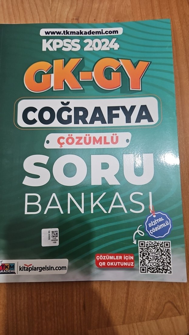 KPSS 2024 Coğrafya çözümlü soru bankasıdır. QR kod ile dijital çözümlere erişim sağlar. GK-GY sınavlarına uygundur.