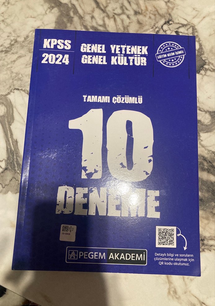 KPSS 2024 için Pegem Akademi tarafından hazırlanmış, genel yetenek ve genel kültür konularını içeren tam çözümlü 10 deneme kitabı.