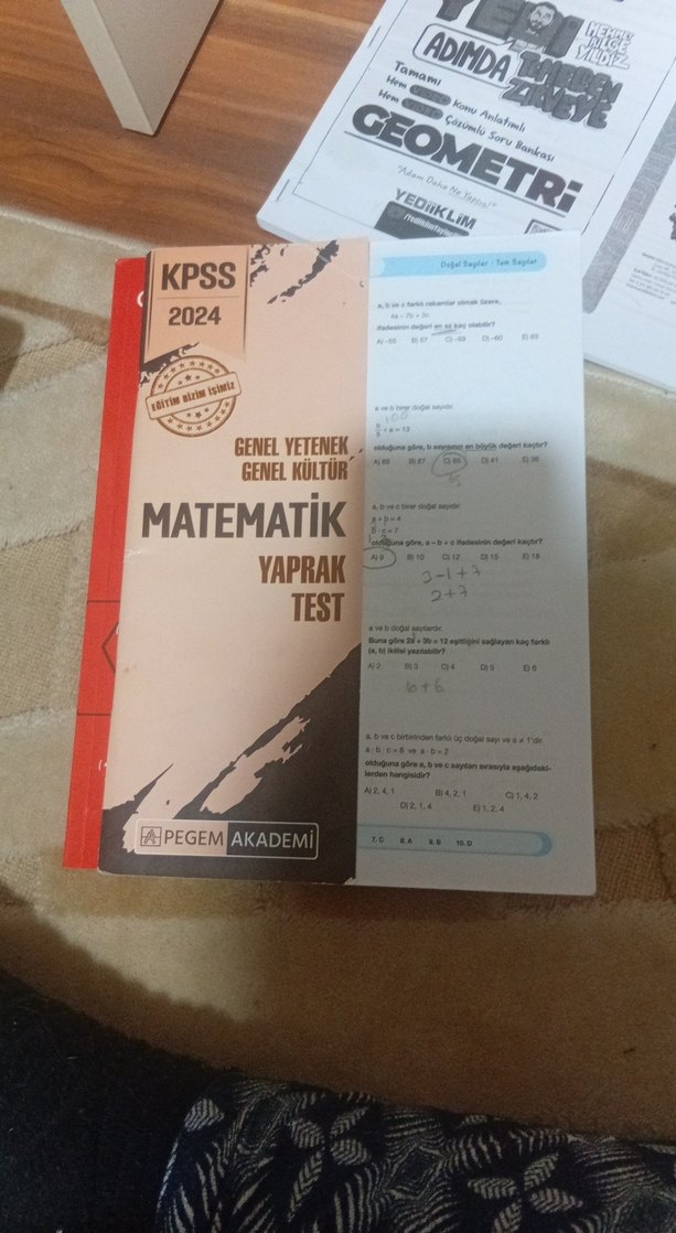 KPSS 2024 Matematik yaprak test kitabı, genel yetenek ve kültür konularını içerir, Pegem Akademi yayıncılığında.