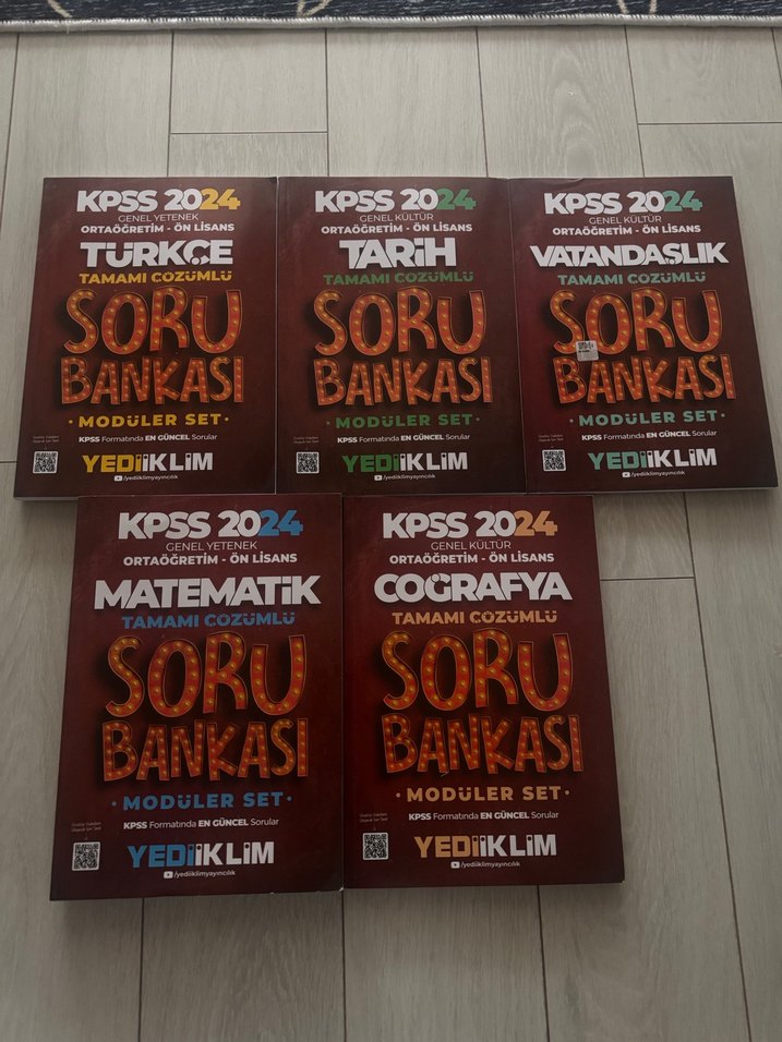 KPSS 2024 için Türkçe, Tarih, Vatandaşlık, Matematik ve Coğrafya tam çözümlü modüler soru bankası seti. Sıfır kitaplar.YANINDA HEDİYELER GÖNDERİYORUMM