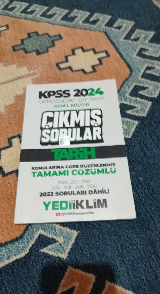 KPSS 2024 tarih çıkmış sorular kitabı, 2008-2022 yılları arası konulara göre düzenlenmiş, tam çözümlü sorular ve 2022 sorularını içerir. ilk ünite çözüldü gerisi temiz