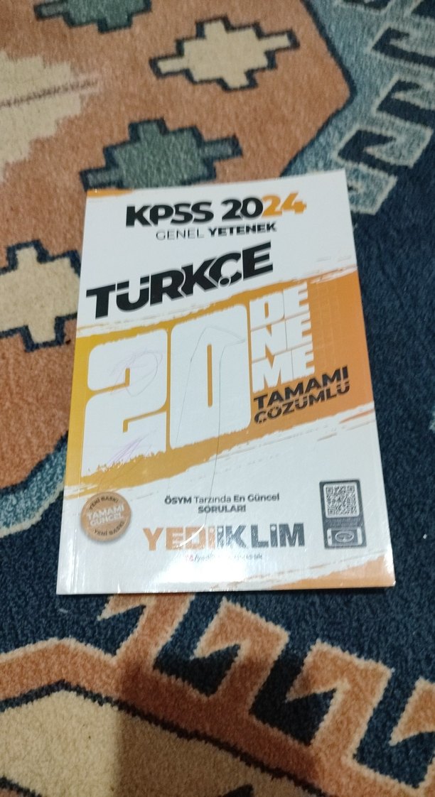 KPSS 2024 Türkçe Genel Yetenek kitabı, 20 tamami çözümlü güncel ÖSYM soruları içerir. Yediiklim yayınevi. İlk iki sayfası çözüldü gerisi temiz