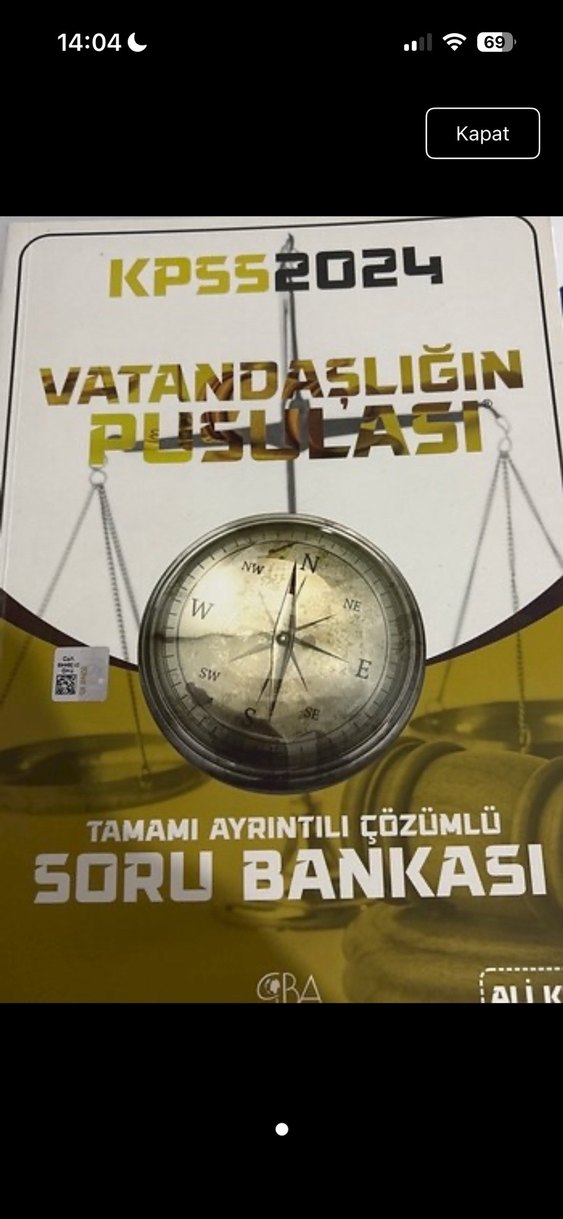 KPSS 2024 Vatandaşlığın Pusulası adlı bu soru bankası, tam ayrıntılı çözümlerle vatandaşlık sınavına hazırlık için hazırlanmıştır. Kapakta pusula görseli bulunur. ️