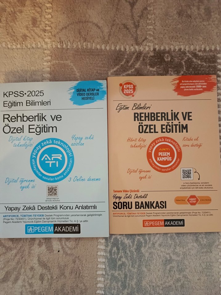 KPSS 2025 Rehberlik ve Özel Eğitim için yapay zeka destekli konu anlatımı ve dijital öğrenme araçları içeren Pegem Akademi soru bankasıdır.