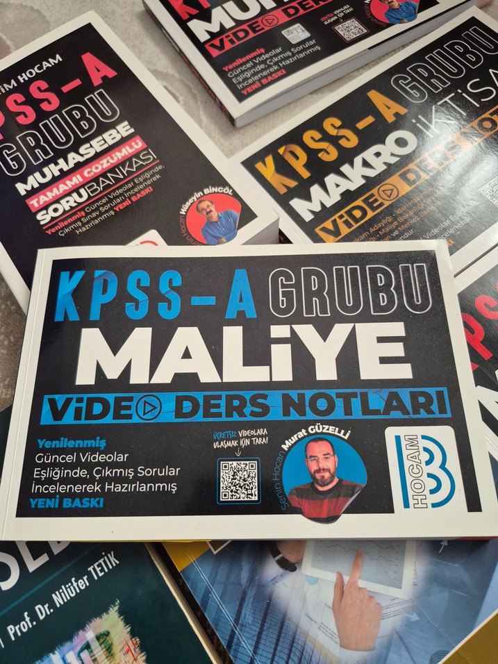 KPSS-A Grubu Maliye kitabı, güncel video ders notları ve incelenmiş çıkmış sorular içerir. Sınav hazırlığı için kapsamlı bir kaynaktır. Murat Güzelli Hocamin kitabi, ilk 6-7 sayfası dolu, notlar bulunmakta.