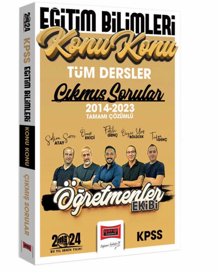 KPSS Eğitim Bilimleri için 2014-2023 yılları arasında tüm derslerin tam çözümlü çıkmış sorularını içeren öğretmenler ekibi tarafından hazırlanmış kitap.