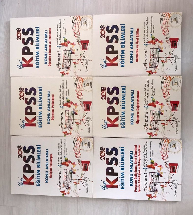 2018 KPSS Eğitim Bilimleri Armoni Konu Anlatımlı Modüler Set, Yargı Yayınları. Ölçme ve değerlendirme kitabında 26 konu testi var, sadece 5 tanesi çözüldü, sonra silgi ile silindi. Diğer kitapların konu testleri çözülmedi, temiz. Konu anlatımlarında kurşun kalemle alınmış notlar var. Rehberlik hiç kullanılmadı.